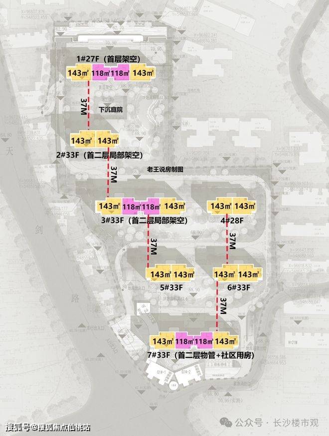 2.行列式布局,前后每栋的楼间距全部保持在37米。