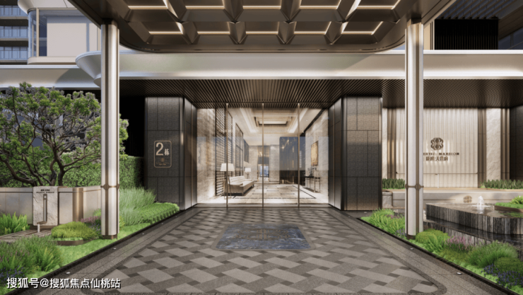 奢级圈层生活!三进制归家礼序+誉CLUB专属服务超70米高定门庭、酒店式归家双大堂、外立面圆弧语言等,由奢石筑造而来,与迎宾水景相映成趣,滋养出珠水浩瀚之感。