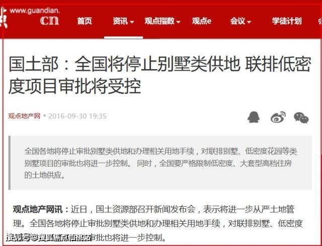 2016年,国土资源部召开新闻发布会,将进一步从严土地管理,控制对联排别墅、低密度花园等类别墅项目的审批。