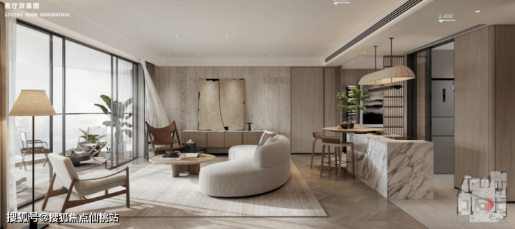 125㎡户型硬装设计为度假风格米黄色调,定制入户门+隐藏智能门锁,地面900×1800大板砖+人字拼地板设计;赠送客厅背景墙、木饰面及全屋艺术涂料。209㎡户型整体米黄色调,天然木质与石材相搭配,柜体材质选用天然木皮面板加灯带设计,软装设计搭配皮革、木质、洞石,运用不同材质的交叠,与空间度假休闲呼应。