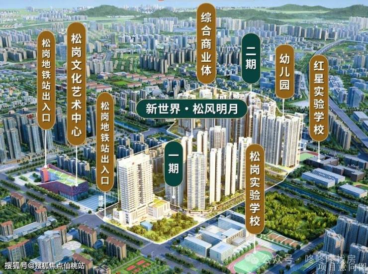 新世界·松风明月坐落于深圳宝安区松岗街道核心区域,精准占据松河北路北侧与沙江路南侧的黄金交汇处,以松岗河为自然分界,分两期匠心打造,总建面约73万㎡,是集品质住宅、商务公寓、社区商业与大型购物中心于一体的综合品质大城 。作为深圳西部发展的重要节点,项目地处粤港澳湾区核心位置,叠加大前海、空港新城、海洋新城与新会展经济圈多重规划辐射,既坐拥成熟的城市生活氛围,又享有不可复制的区域发展红利。周边紧邻松岗文化艺术中心、中海西岸华府等成熟地标,西侧衔接沙涌一村,东侧与松岗实验学校仅一路之隔,南侧依偎松岗河生态廊道,北侧临近地铁口留白地块,地理坐标兼具生态宜居属性与城市核心配套优势,重新定义了松岗生活区的品质标杆。