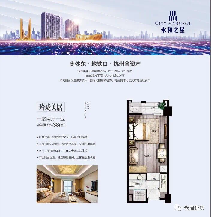 楼盘名:永和之星楼盘板块:萧山新街版块开发商:浙江永和房地产开发有限公司类型:酒店式公寓产权:40年地铁:地铁7号线合欢路400米、盛东路,5号线香樟路,无缝连接建设四路,机场高速,连通奥体以及萧山机场?总户数:剩余100套户型:LOFT/平层层高:loft 4.2米,平层3.4米价格:平层22000,loft31000面积:平层38-loft45㎡装修与否:精装修/带阳台交付时间:2019年10月物业:深圳市锦峰物业经营管理有限公司,物业费2.8元/平+1元/平能耗优势:项目所处区域即是人流聚集之地,未来不用担心自己住不方便也不用担心想出租找房客难的问题。在北京、上海这样的一线城市,商住房销量频刷新高,杭州作为准一线城市,发展趋势必然是向一线城市靠拢的。像2016年公寓入市价格还在13000元/平米—14000元/平米左右,现在基本上都破2万了,地铁口的物业涨的更快,像周边有一些已经卖到了3万—4万元/平米左右。商业配套:目前项目周边生活配套完善,涵盖了市场、学校、医疗配套等,有新农都市场、花木城、传化、万向等,规划中的交通、商业配套也在不断实现。