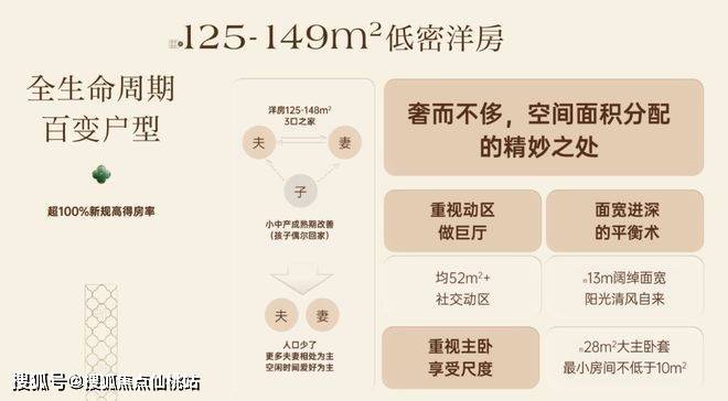 规划闽江畔罕得的建面约125-178㎡低密洋房与东方院墅。产品以新规之下超100%的高实得率,打造全生命周期户型,对比市面同面积段可多享一房空间。室内减少冗余承重墙体,赋予布局更高灵活度,让家随成长而生长,承载不同阶段的生活想象,以回应当代家庭对居住尺度与美学的双重期待。