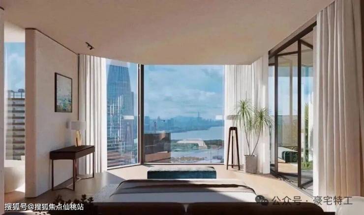 92%超高使用率(深圳豪宅平均约85%),采用第四代住宅设计,配备空中庭院及全玻璃幕墙。