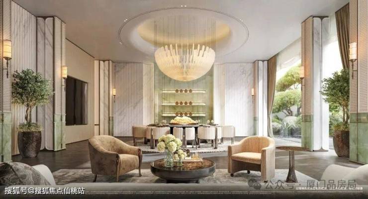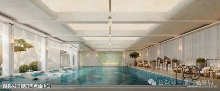 再来看公区配置,家族私宴厅、恒温泳池、健身房等功能空间,以及约8.3米挑高架空层大堂(这个层高难以复制,厦门最新版建筑新规架空层不得高于4.5米)做足了豪宅社区的归家仪式感和尊崇感。