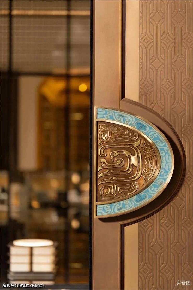 两吨重约7.5米高鎏金铜门,由我国国宝级非遗大师朱炳仁先生锻造,其中,铜金件上雕琢的凤鸟纹样,则取自北京保利艺术博物馆馆藏的海内孤品——周王鼎。步入此境,心绪于文明中穿梭,大家威仪自此展开。