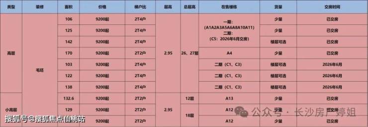 项目户型、价格、楼栋、货量详细信息如下图所示: