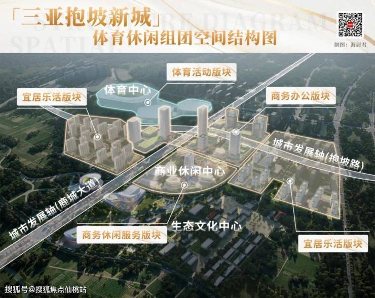 其以“一园、三区、多组团”布局,打造高水平城市新城,承担三亚文体、行政办公中心的重要功能。