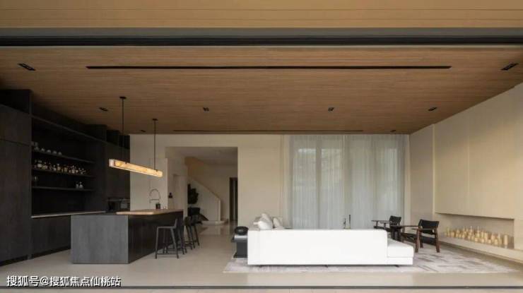 空内功能齐备,可应不同需求,拉天玻璃帷幕,山海为伴与温暖的归属感自然流转,室内的木天花延伸至户外海天一线形成一道连续的景致,无边无相。