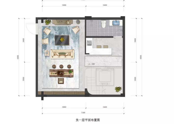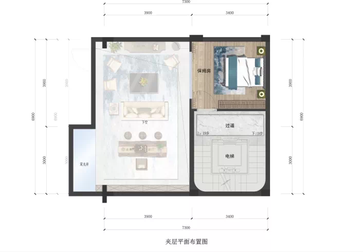● 约5.6米层高,可设夹层,布置静幽茶室、地下会客厅、保姆房