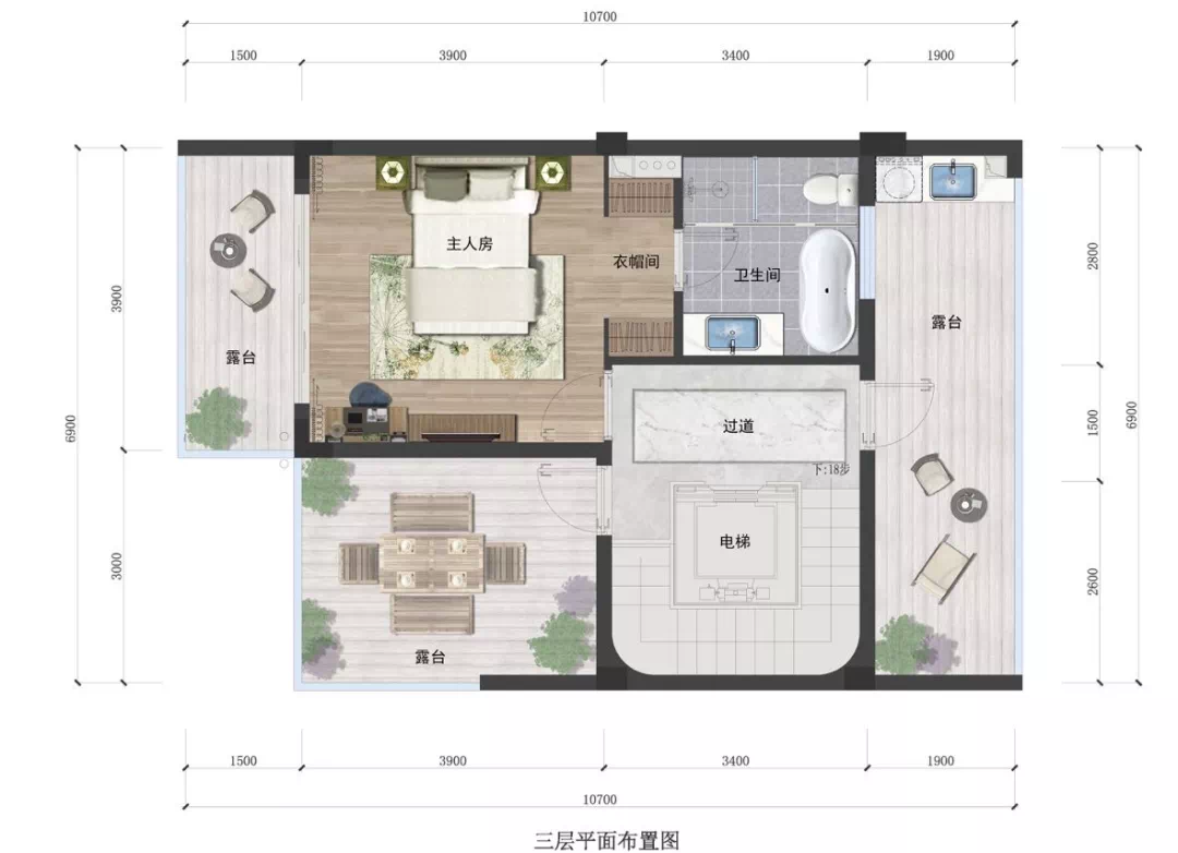 ● 全功能主人层设计,10.7米大开间豪华套房布局,独享尊贵
