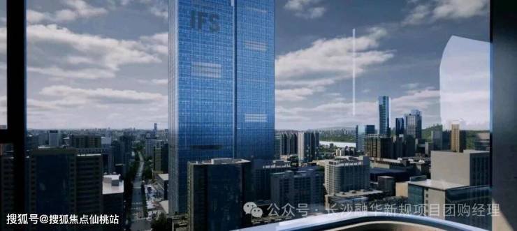 -天际地标:玻璃幕墙+金属铝板环幕立面,搭配吨级巨幅玻璃、48mm三玻两腔,与IFS巅峰对望,重塑长沙天际线。