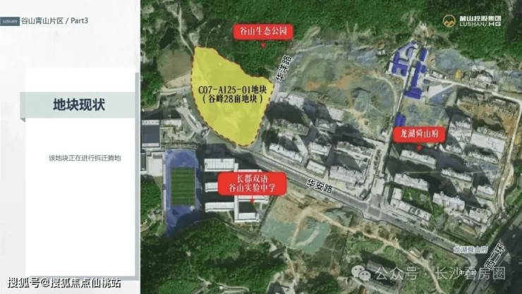 该地块即为谷山青山片区C07-A125-01地块,望岳街道华安路和华洋路交叉口西北角,长郡双语谷山实验中学以北,龙湖舜山府以西。