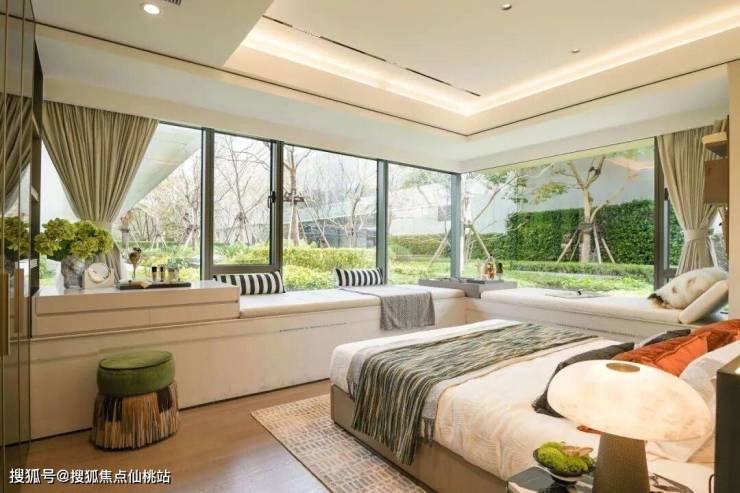 创新设计:270°U型无柱飘窗(主卧18米采光面,景观视野对标豪宅)