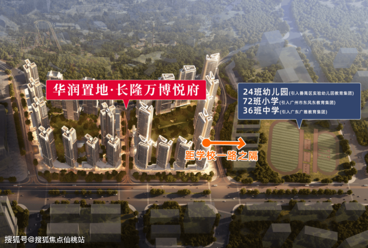 紧邻长隆5公里森林绿道,社区内规划“绿心廊桥”及3公里林荫大道,实现“公园+居住”融合。
