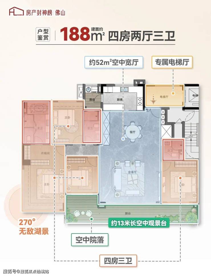 建面约188㎡小高层,充分彰显其格局的优越性。
