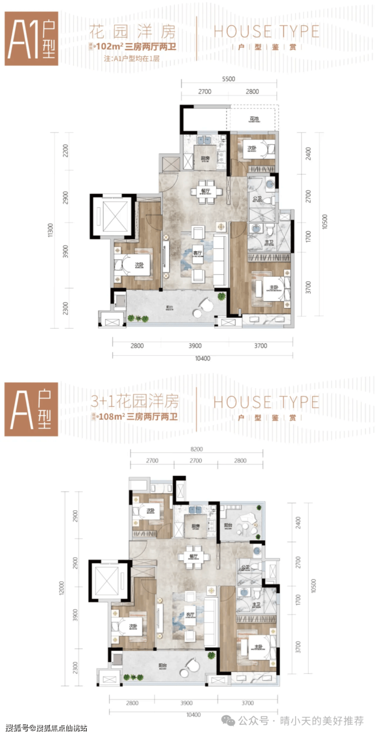 ▲户型:108-135㎡3+1房,一梯两户纯板房