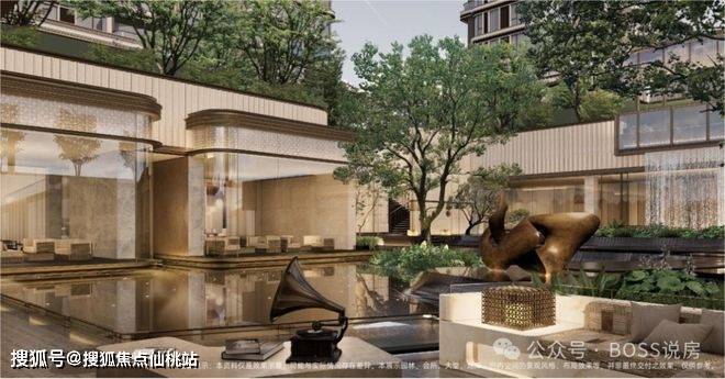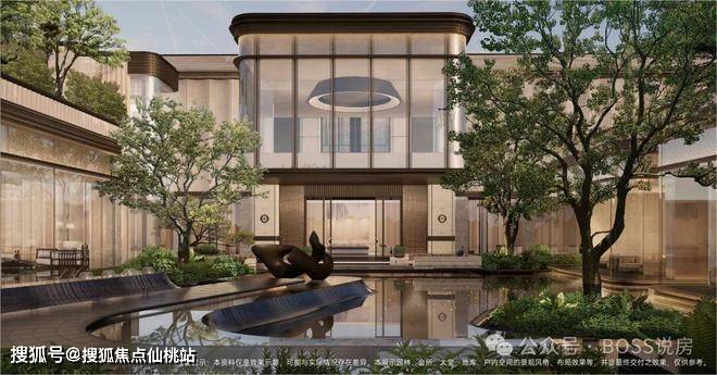 节点:主入口水景、下沉庭院、镜面水景、艺术雕塑、绿植组团,形成归家仪式与疗愈空间。