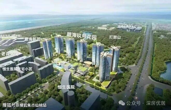 碧海玖号花园,位于深圳市宝安区西乡街道碧海片区核心地段,宗地号A113-0010,是碧海片区最后一块住宅用地,容积率仅2.2,为片区内最低之一。项目紧邻深圳机场,西/西北向无遮挡视野,可远眺深圳湾海景、碧海湾高尔夫球场及碧海湾公园,形成"三重景观"资源。作为前海合作区辐射范围内的优质住宅项目,碧海片区已纳入前海"扩区"国家战略,享有前海产业外溢红利。同时,项目被铁仔山公园、西湾红树林湿地公园等三大公园环绕,西侧临海,形成"山、海、园、城"四重景观复合体,是深圳西部兼具稀缺景观资源与前海产业价值的宜居板块。