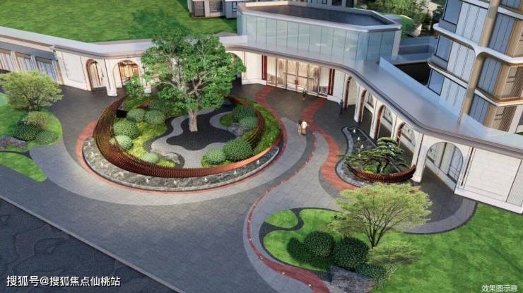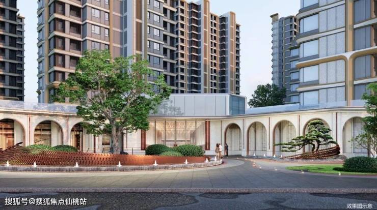 百年古树伫立门前,以金属线条勾勒鎏金门庭,大堂前庭以古树为核心,寓意凤栖梧桐,手工石材铺装地面,打造科技与自然共生的优雅格调,让归家的每一步皆成人文风景。