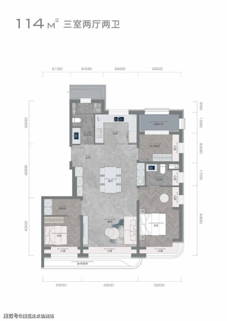 户型外跨装饰廊架、综合出房率约90%-98%