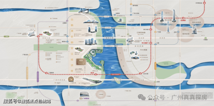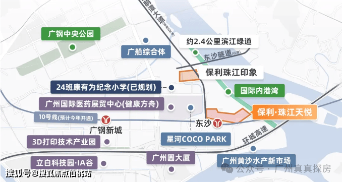 项目南侧就是10号线东沙地铁站约400米,步行4-5分钟即可到达,预计今年年底就会正式开通,开通后4站中大、6站滨江栋,零换乘直达珠江新城,同时家门口还有规划水上巴士以及港湾码头(预计3年完工),平常不想坐地铁还能坐水上巴士达珠江新城还能一边欣赏风景。