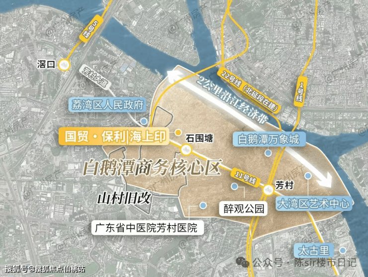 地块处于白鹅潭沿江带,区位不错又有江景,距离万象城1个站,太古里2个站,前者26年正式开业,后者年底就会有首开区先开业。