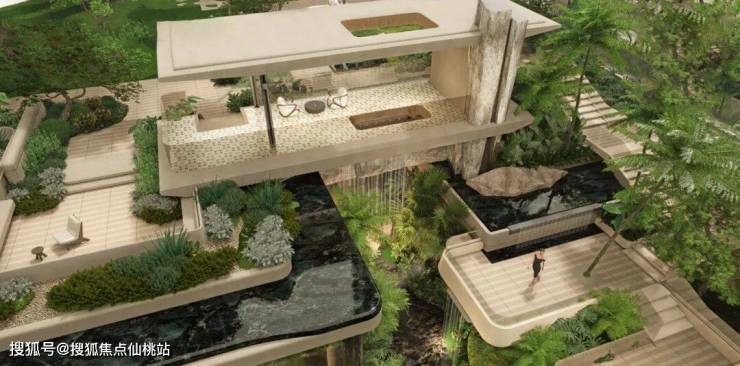 项目以岭南园林“推窗见绿”的空间景致为灵感,打造了四大对景与四大花园,下沉庭院空间层层展开。