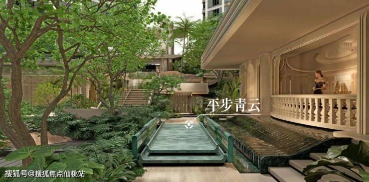 前者取意“平步青云”,后者沿着阶梯拾级而上,寓意“步步高升”。一处景观,两种意境,将东方人居的吉祥寄望,不动声色地融入了归家动线。