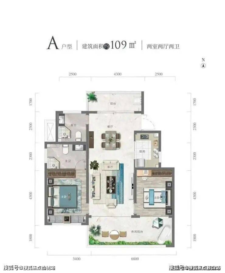A 户型109㎡两室两厅两卫