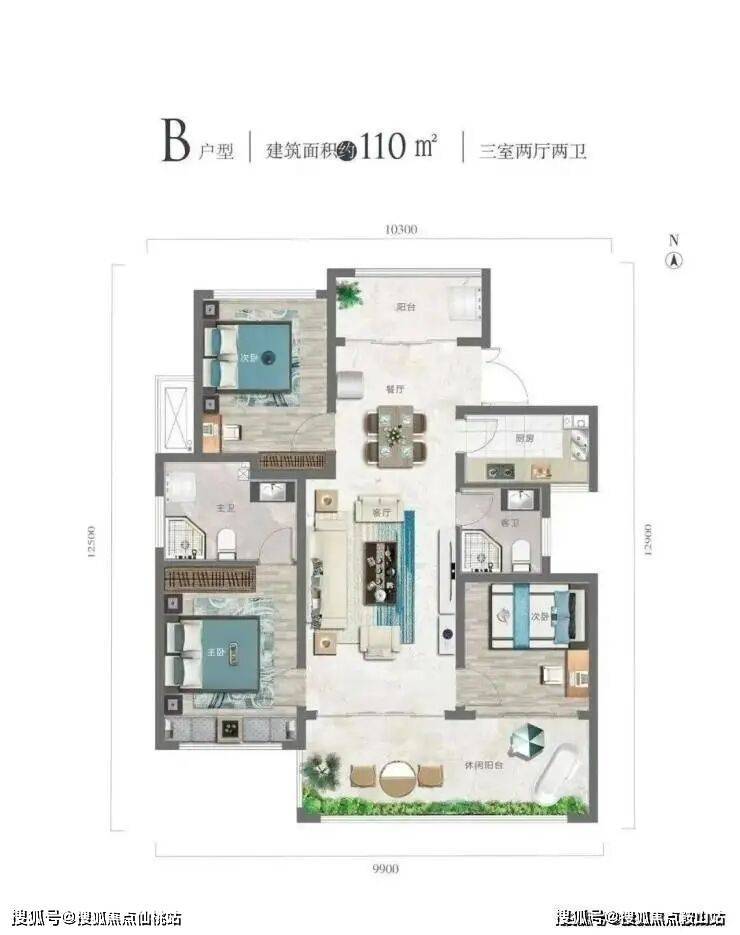 B 户型110㎡三室两厅两卫
