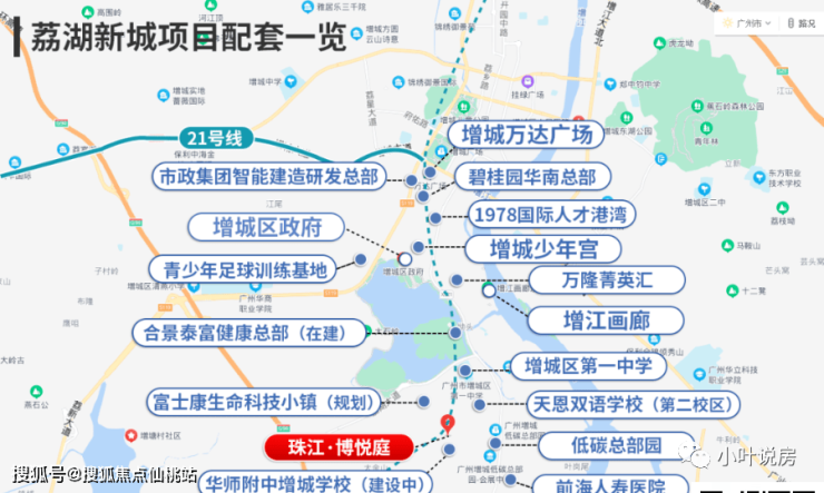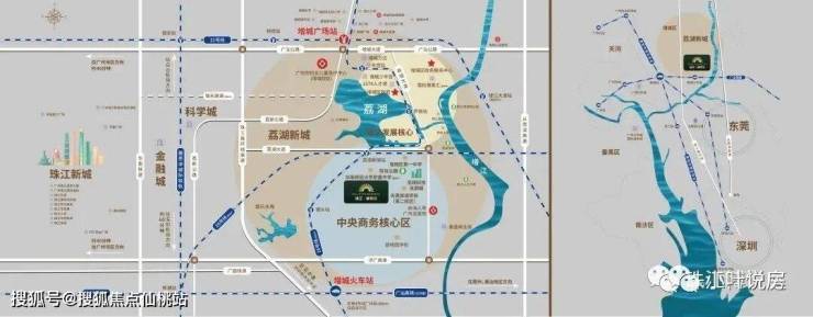 增城广场、增城火车站、新塘TOD三大枢纽环绕,21号线快线4站通天河、穗莞深城际连通深圳……