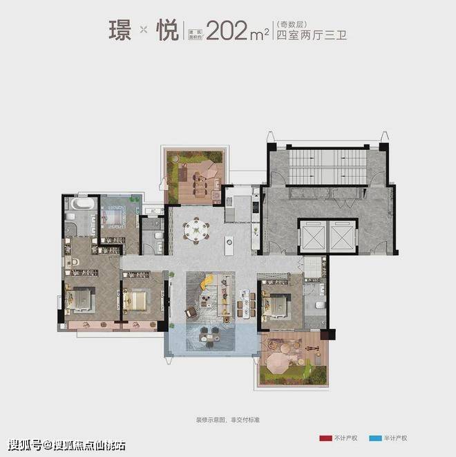 建面约202㎡四房两厅三卫(偶数层)
