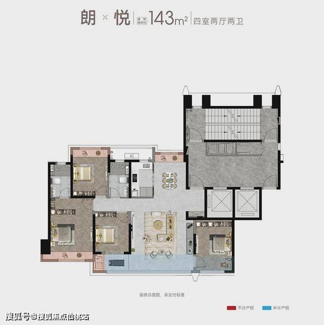 建面约163㎡四房两厅三卫(奇数层)