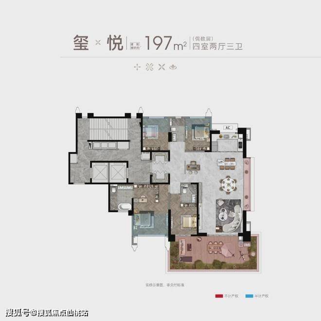 建面约197㎡四房两厅三卫(奇数层)