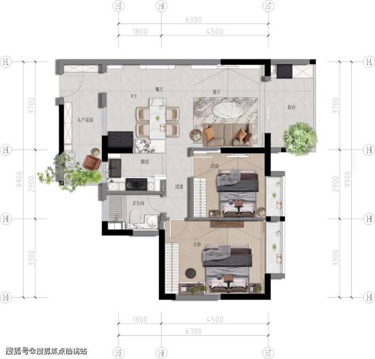 ◎宜居范本:独立入户花园,方正两房筑就宜居典范