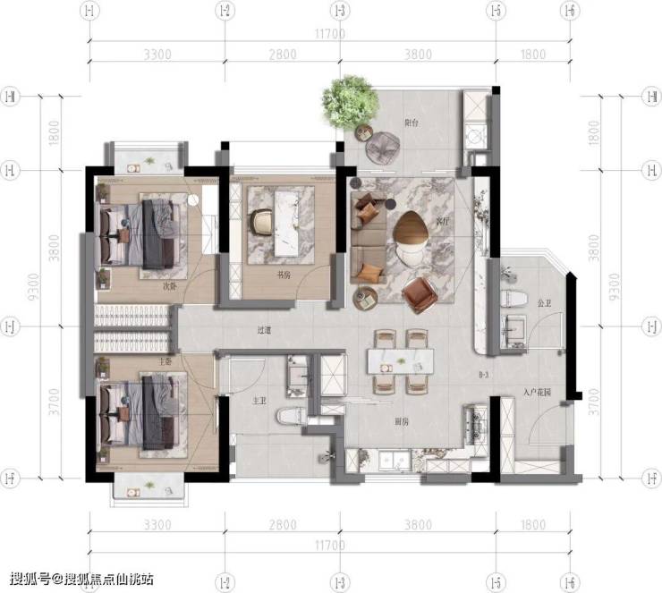 ◎无界生活:创新LDKS-B空间模式,客餐厨、书房、阳台联动打通