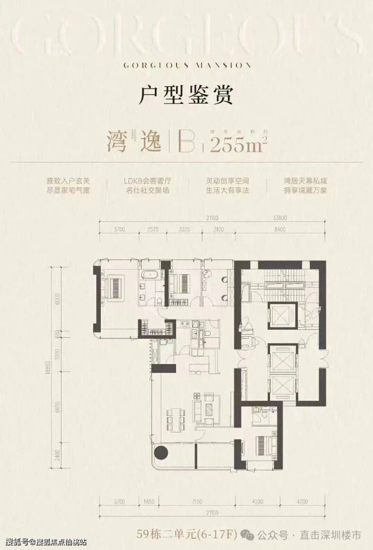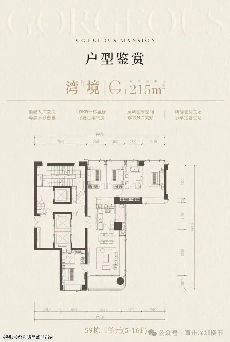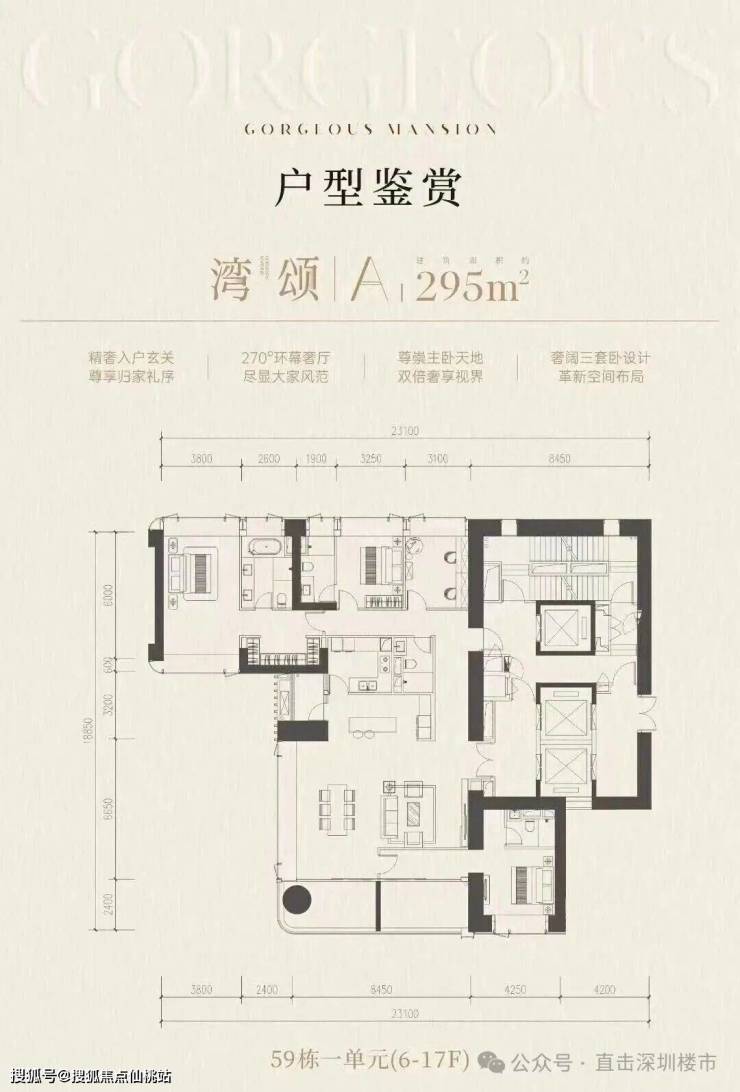 前海桂湾「前海时代尊府」取证加推最后大平层户型,为59栋的三个单元(59-1/2/3栋),面积约为215-255-295㎡,三梯两户,全南向景观,预计2026年交付。
