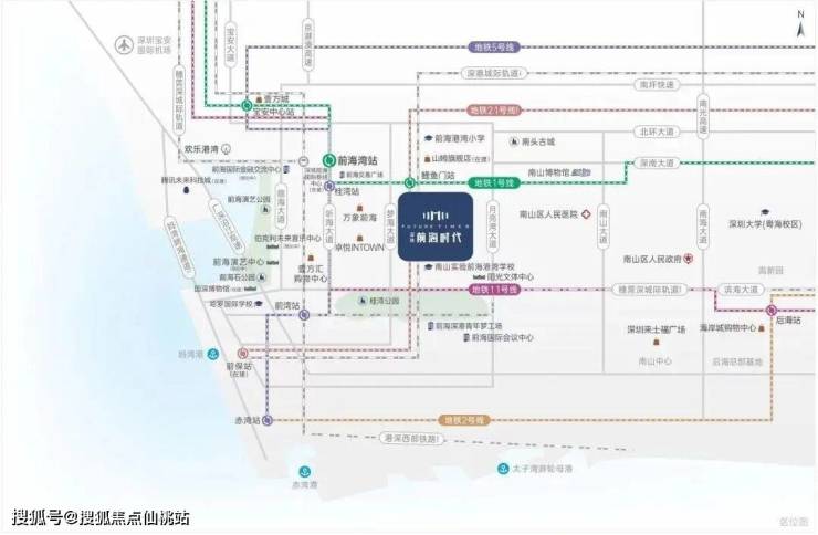 「前海时代三期尊府」位于前海桂湾片区南侧,临近滨海大道和桂湾河,在整个前海自贸区内算是住宅的C位,正南侧水廊道公园,东南望南山西南看城市海景。