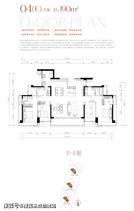 约190㎡户型南北通透,户户带270°采光阳台。双套房+独立入户玄关设计搭配宽景大阳台及高使用率,居住舒适度拉满。