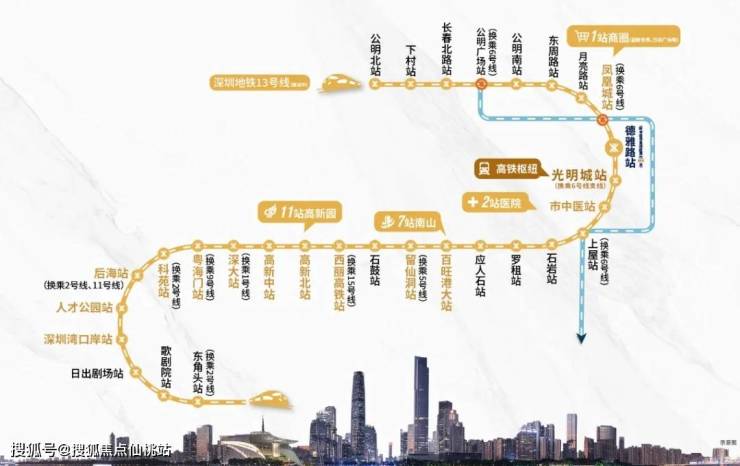 交通配套:项目交通便捷,拥有“三轨三高速”网络。距13号线德雅路站100米,预计2026年开通,7站达南山科技园;1站至光明城站,换乘6号线支线二期及高铁,30分钟抵港穗。