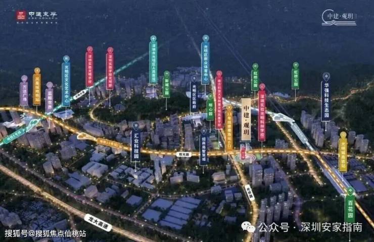 中建观玥名邸,位于光明区凤凰街道的住宅项目,紧邻光明科学城核心区与凤凰城板块,是高铁站板块最后一块住宅用地。项目周边有区政府、文化艺术中心等行政文化设施,2公里内覆盖蓝鲸世界、万达广场等商圈,享有15分钟生活圈便利。得益于光明科学城规划,区域将吸引高端科学人才,提升价值,并拥有“乐活城”特质,融合科技与宜居性。