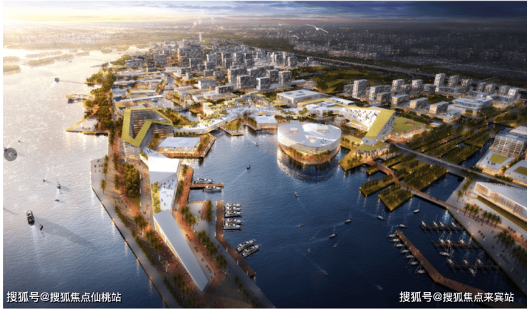 生态方面:6.4km深圳版赛纳会展河,水岸舞台区、都市水上生活区等核心区域,天空栈桥、空港剧院、飘浮水花园、红树瞰塔等核心节点景观,滨水、生态气息鲜明,感受都市水上体验场全时全龄生活。在会展湾这样的“碧城之上”城市会客厅,还可体验高品质滨海舞台感。