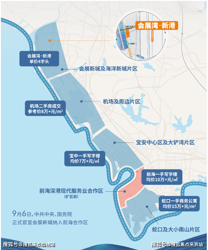 前海自贸区的面积增加到120.56平方公里,占到深圳总面积的6%,作为前海门户的会展湾,地位不言而喻