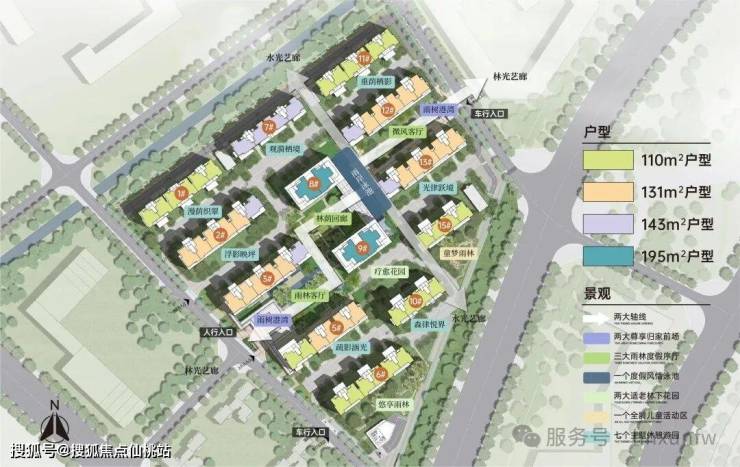 ✨亮点:围合式布局,打造南北通透,户户观景,以中轴水系延伸景观设置泛会所入户大堂。游园式归家,双动线,保证南北两个组团独立,整体增强私密性,减少居住干扰。