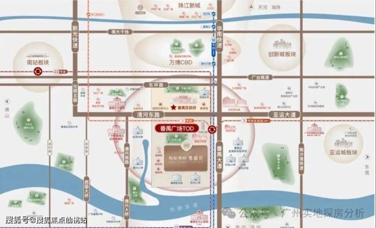 项目位于番禺区区府核心板块,紧邻番禺广场,周边大量的政府单位、商业、写字楼都在这边,且该板块已经10年没有新楼盘出现了。