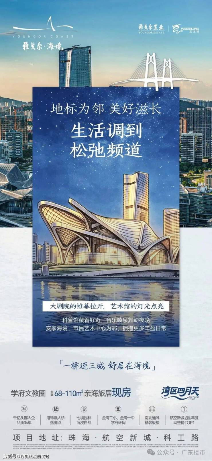 项目名称:雅戈尔·海境(推广名) | 开发商:珠海鹏湾置业有限公司 | 物业公司:宝龙物业,3元/㎡ | 项目位置:珠海·航空新城·科工路