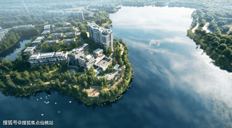 从高处俯瞰,项目地块整体呈“龙体蜷曲”的形态,引水系环绕全岛,犹如“玉带环腰”,内湖单位无疑是近水楼台先得月,有“收水聚财”的独特优势。