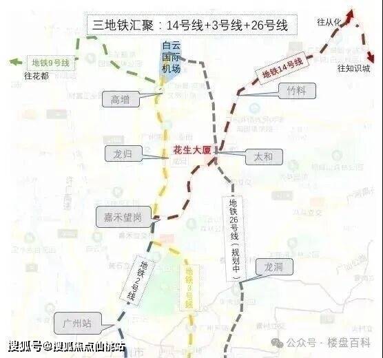 地铁——(三地铁汇聚)地铁14号线太和站3站连接嘉禾望岗及从化,接驳知识城线可往返知识城及增城,接驳地铁2号线可往广州火车站、广州南站等。地铁14号线为广州首次开行快车模式(全程仅30分钟);地铁3号线龙归站可沟通白云国际机场与珠江新城,直达番禺。接驳广州地铁9号线可达花都;地铁26号线沿广州大道南北走向的地铁线路,起始于白云区太和镇,终于番禺区北斗,与3号线平衡线;广佛环线、穗莞深线通车珠三角地区轨道交通同城化,推动广州、佛山、东莞、深圳一小时生活圈。