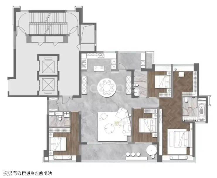 建面约 217㎡ 五房两厅三卫:终极改善楼王大平层,专梯专户独立入户,全卧室套房设计,270° 环幕江景视野